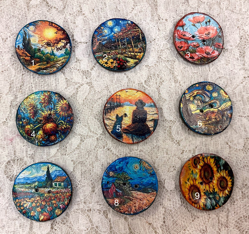 1.18” Buttons- Van Gogh styles-assorted-Great Adirondack-handcrafted-price is per button