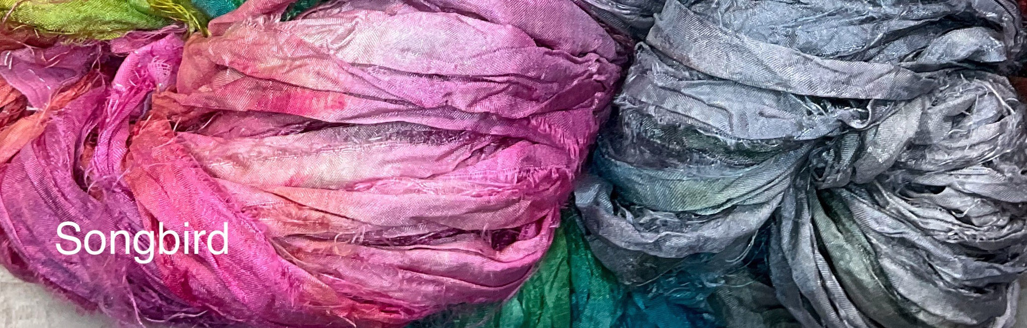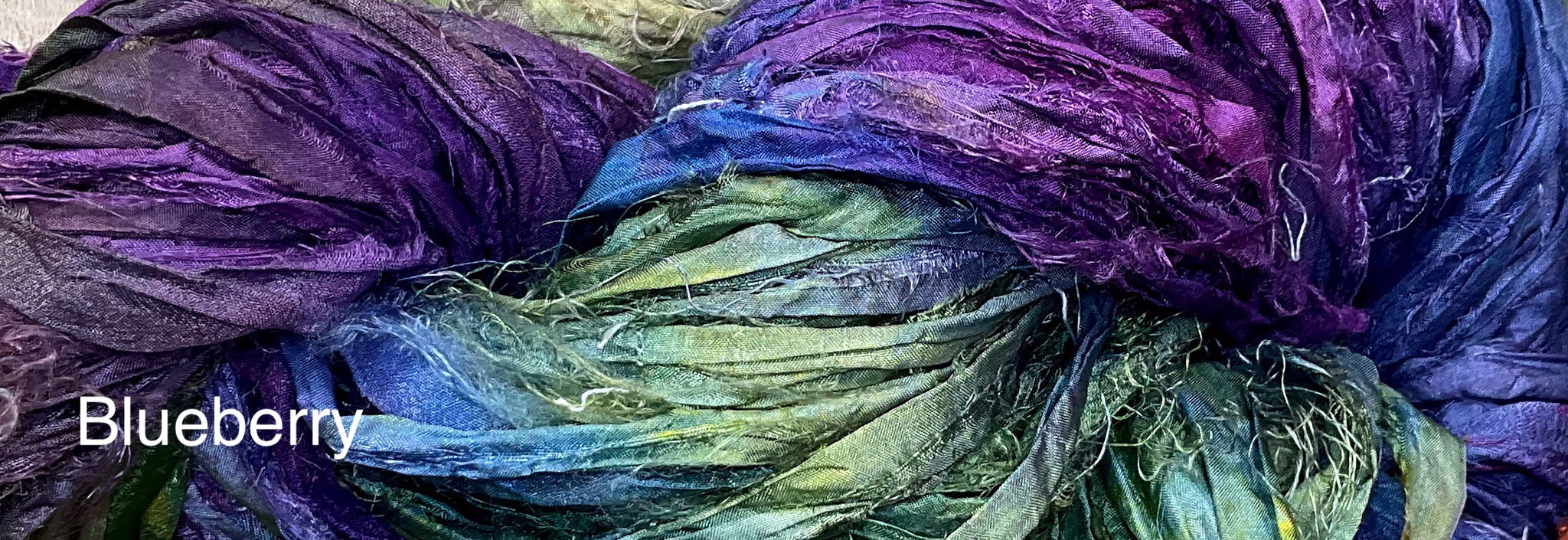 Sari silk ribbon, is made in India or Nepal,and is repurposed silk fabric. The ends or remnants of the silk would otherwise be treated as trash, and sent to a landfill. This wonderful ability to create jobs for women otherwise not able to sustain an income, is what fair trade is all about. This silk ribbon is sewn in strips end to end to make this wonderful yarn for trim, quilting, mixed media, altered art, embellishments, beading, scrapbooking, jewelry, knitting Journaling Fringe and more. These are ribbons that are 1" to 1.5” wide. and frayed lightly on the edges, for a shabby chic look.