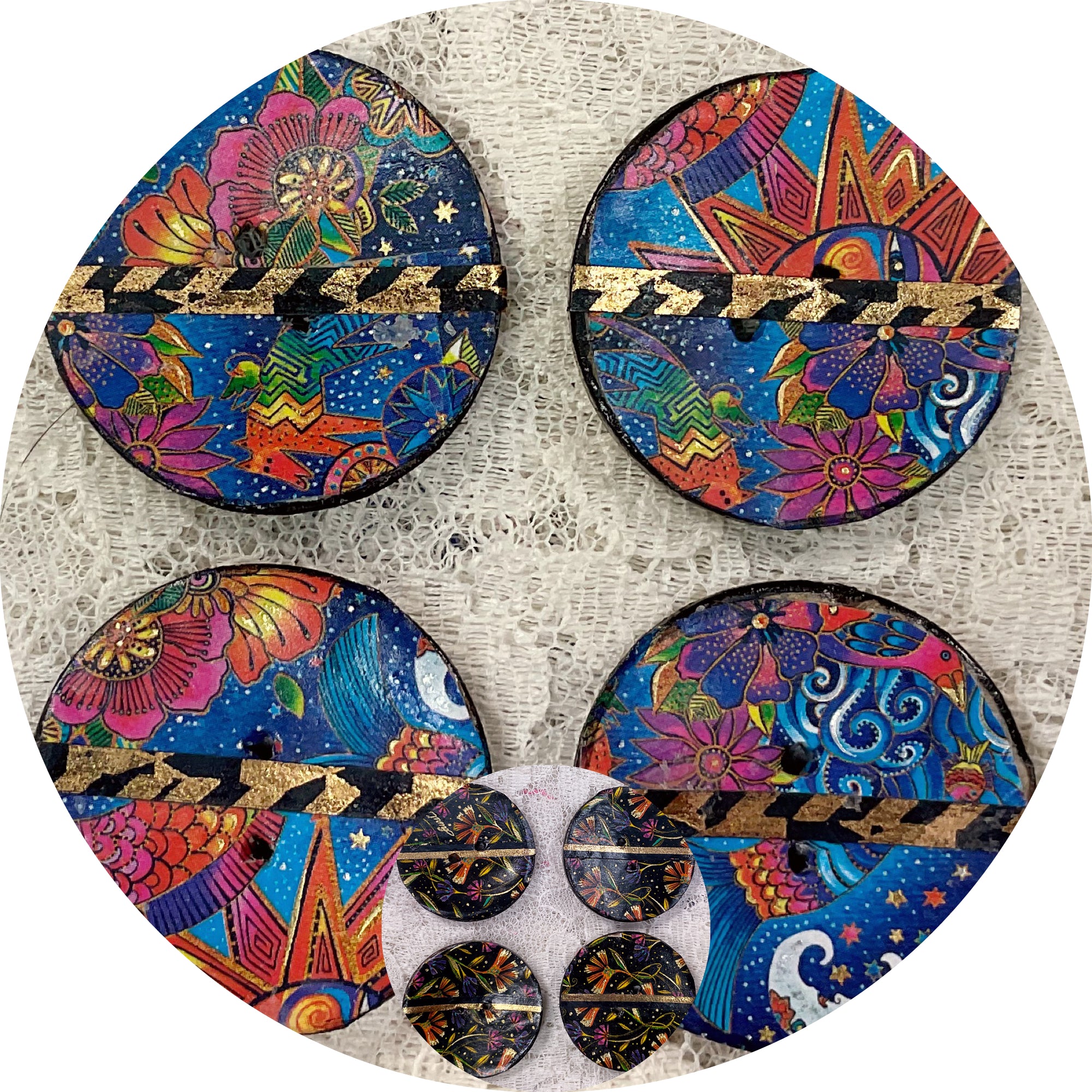 1.18” Buttons-celestial- wildflowers-Laurel Burch-assorted-Great Adirondack-handcrafted-price is per button
