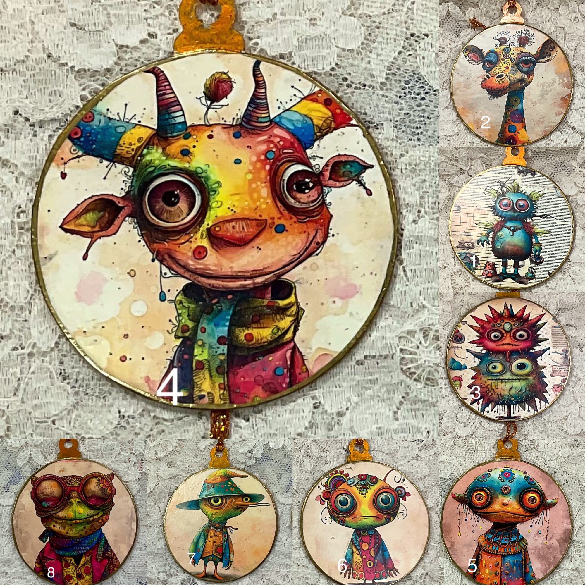 3” ornaments-funny funky creatures-assorted-holiday-Christmas-gift-price per ornament