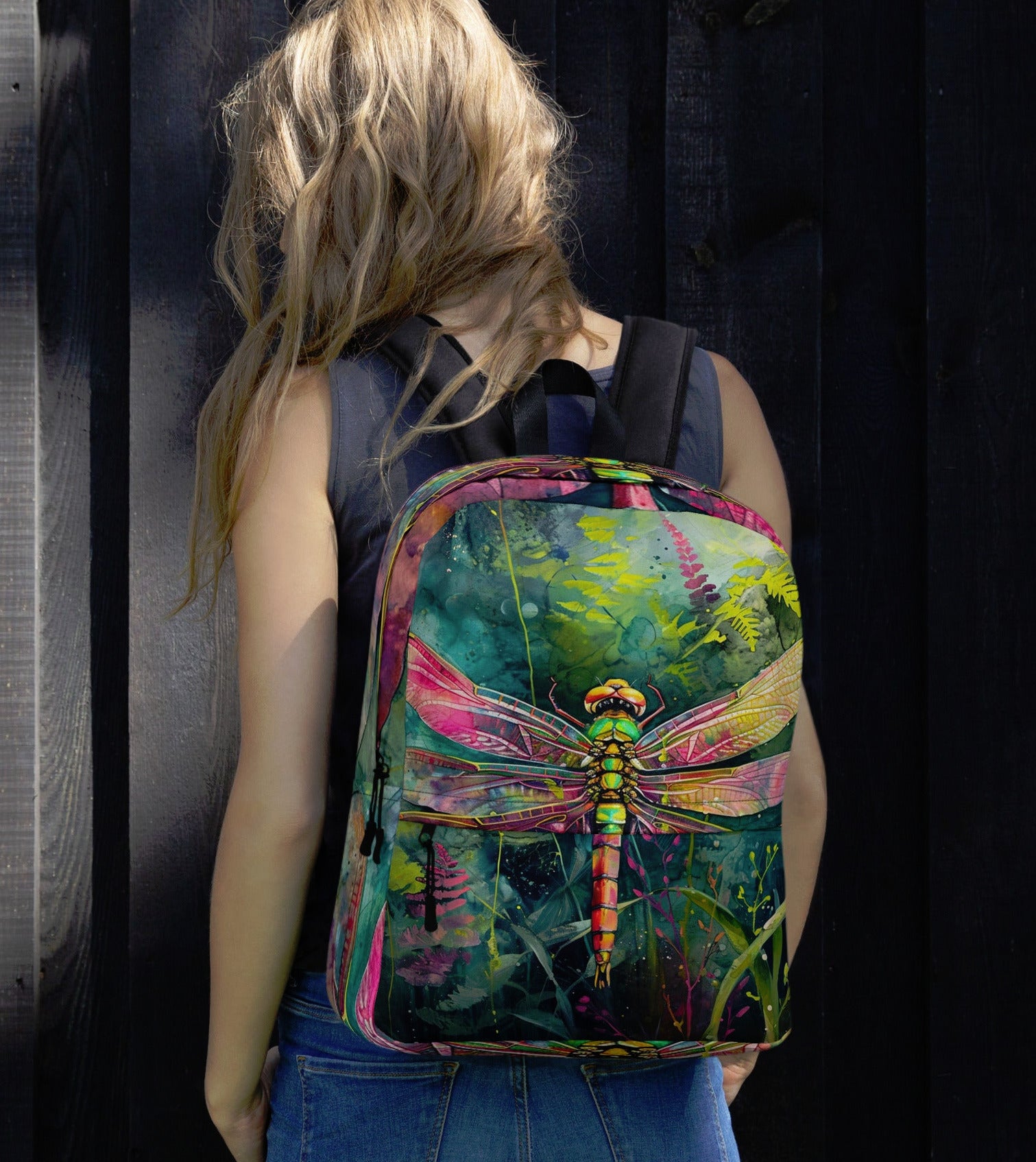 This medium size backpack with a gorgeous dragonfly print is just what you need for daily use or sports activities! The pockets (including one for your laptop) give plenty of room for all your necessities, while the water-resistant material will protect them from the weather.