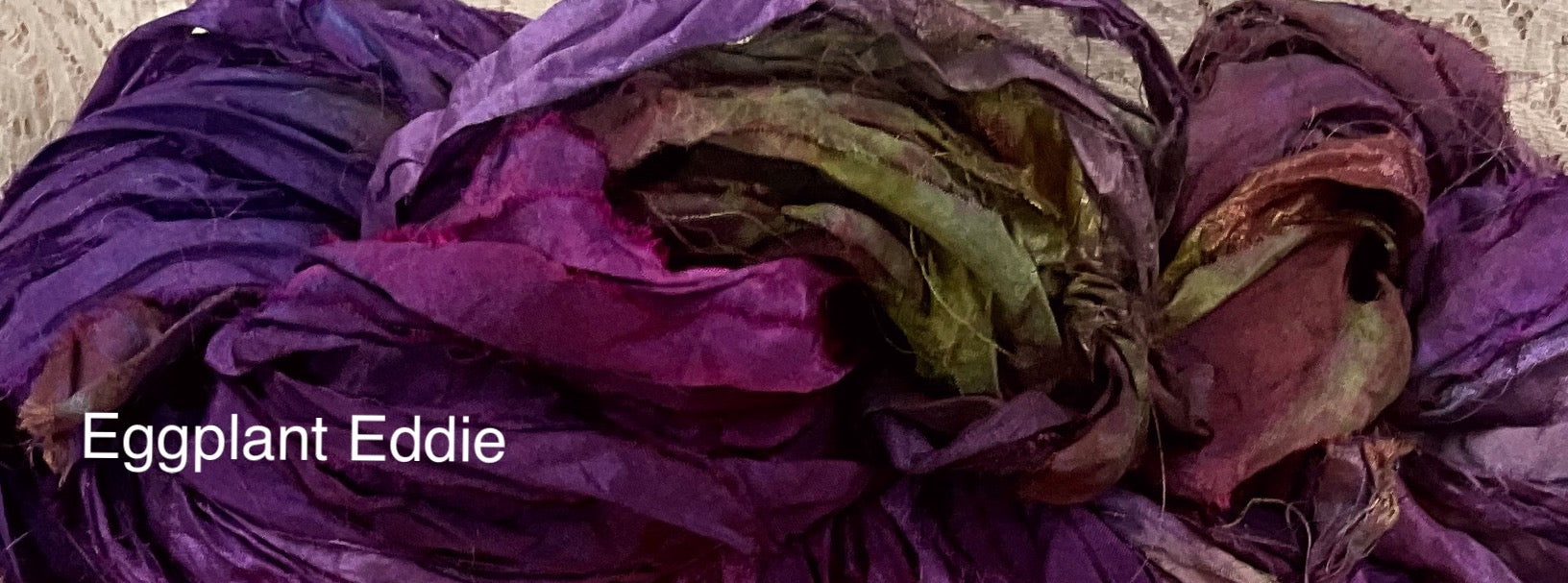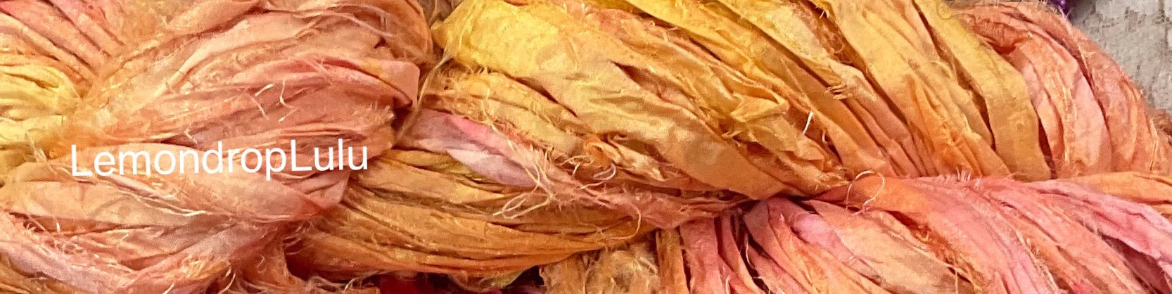 Sari silk ribbon, is made in India or Nepal,and is repurposed silk fabric. The ends or remnants of the silk would otherwise be treated as trash, and sent to a landfill. This wonderful ability to create jobs for women otherwise not able to sustain an income, is what fair trade is all about. This silk ribbon is sewn in strips end to end to make this wonderful yarn for trim, quilting, mixed media, altered art, embellishments, beading, scrapbooking, jewelry, knitting Journaling Fringe and more. These are ribbons that are 1" to 1.5” wide. and frayed lightly on the edges, for a shabby chic look.